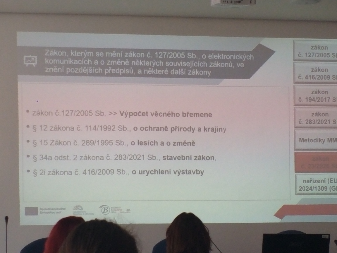 - právní předpisy: Zákon o elektronických komunikacích, Liniový zákon, Zákon o koordinaci .., Stavební zákon, DTM, Zákon o oceňování majetku, nařízení GIA